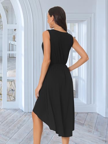 Seta T Women's Summer Dresses Sleeveless Tank Sundress Wrap V Neck Pleated High Low Hem Midi Dress with Pockets 5