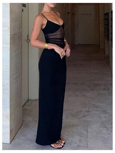 More information about Women's Sheer Mesh Cut Out Maxi Dresses V Neck Sleeveless Patchwork Cami Summer Bodycon Dress