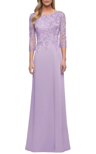 Women's Mother of The Bride Dresses with Sleeve Long Chiffon Lace Formal Wedding Evening Gowns 1