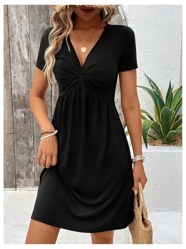 SOLY HUX Women's Twist Front V Neck Short Sleeve Dress A Line Casual Short Dresses 6