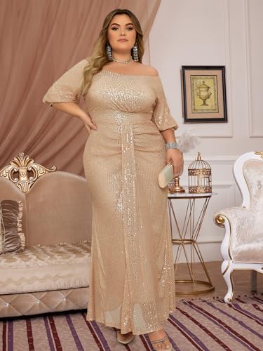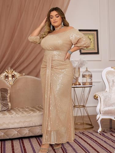 Madam Uniq Women Plus Size Short Sleeve Sequin 1920s Dress Off Shoulder Maxi Formal Cocktail Wedding Party Evening Gown 1