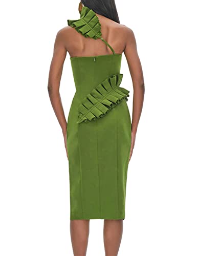 houstil Women's One Shoulder Wedding Guest Dress Side Split Bandage Bodycon Midi Cocktail Club Dresses 6