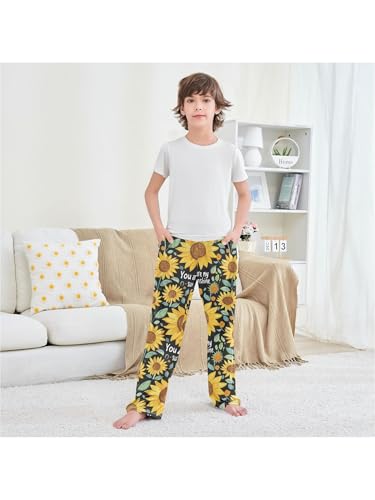 ZZKKO Watercolor Sunflower and Sunshine Lettering Boys Pants for Kids Jogger Pants with Pockets S 6
