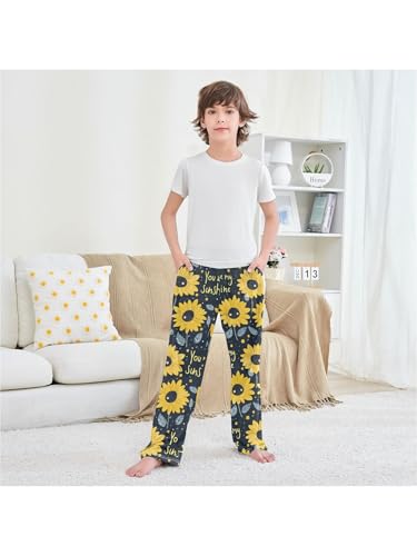 ZZKKO Cartoon Sunflower and Blue Leaves Boys Pants for Kids Jogger Pants with Pockets S 5