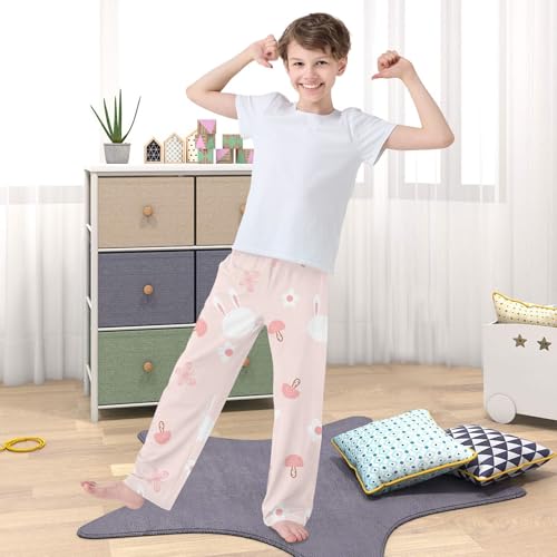 HOT ! Bunny on Pink Boys Pants Boys Athletic Pants Long Pant for Boywith Pockets Wide-Leg Size 6-14Y