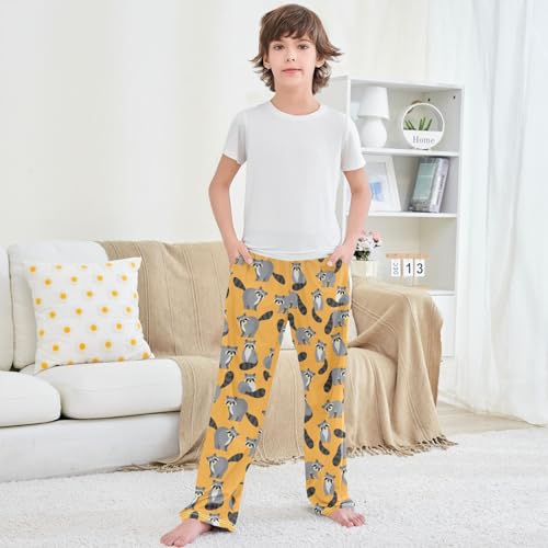 Boy's Pants Raccoon on Orange Jogger Pants Elastic Waist Long Bottoms Trousers with Pockets 6-14 Years 4