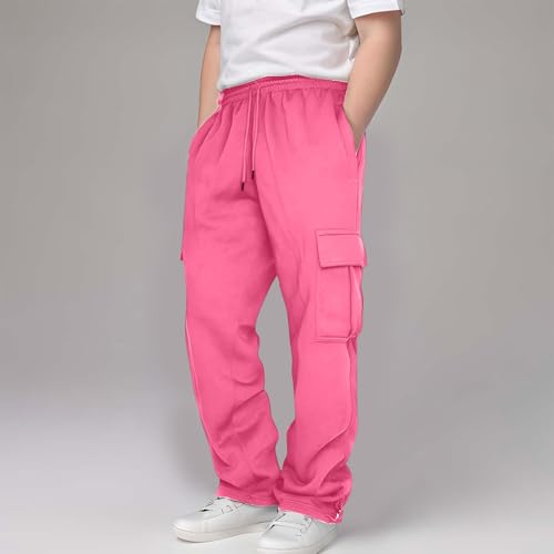 HOT ! Boys Girls Cargo Pants Drawstring Elastic Waist Athletic Sweatpants with Pockets Kids Casual Loose Solid Color Long Trousers