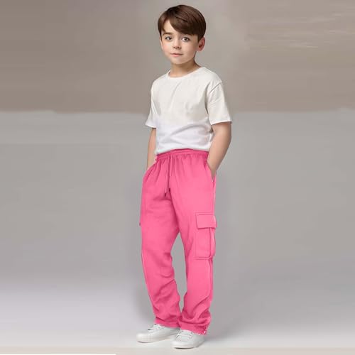 Boys Girls Cargo Pants Drawstring Elastic Waist Athletic Sweatpants with Pockets Kids Casual Loose Solid Color Long Trousers 6