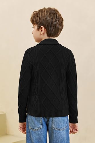 Boy's Sweater Cardigan Button Down Shawl Collar Cable Knitted Outwear Long Sleeve Sweater Coats with Pockets 6