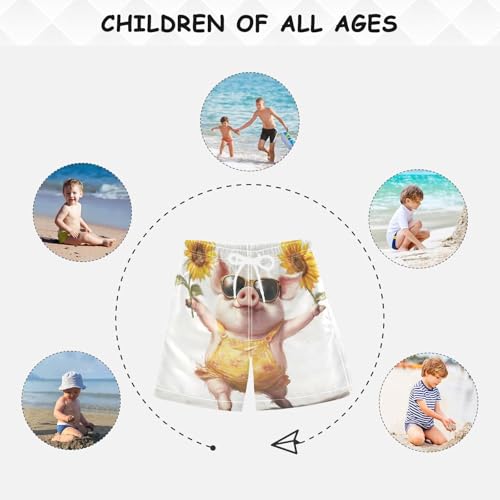 Pigsaly Boys' Swim Board Shorts Sunny Sunflower Sunglasses Confident Dancing Pig Boy's Swim Trunks Kids Swimwear M 4