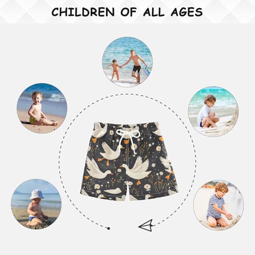 Pigsaly Boys' Swim Board Shorts Camomile Flowers White Geese Ducks Boy's Swim Trunks Kids Swimwear XS 3