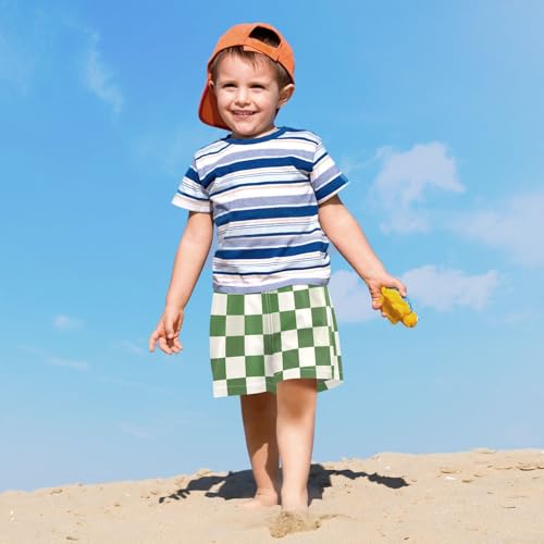 Bolaz Toddler Boys Swimwear Swim Trunks with Compression Liner 4T Green White Checkered 6