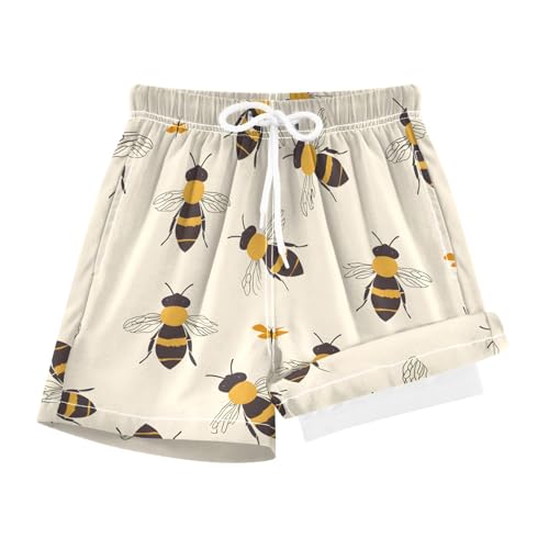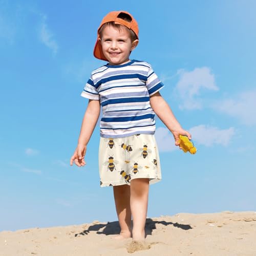 Bolaz Toddler Boys Swimwear Swim Trunks with Compression Liner 4T Bees Off-White 7