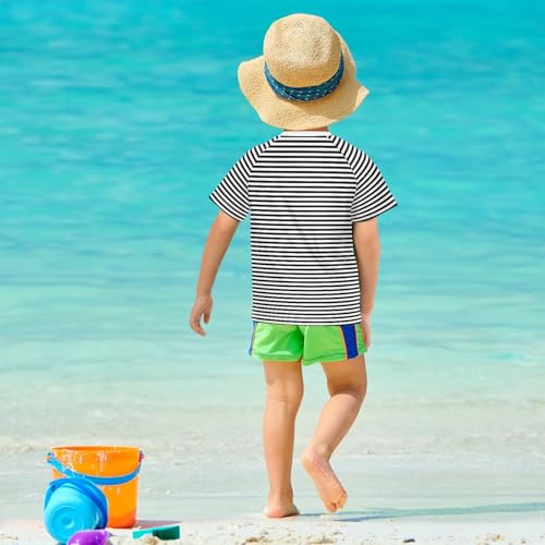 CaTaKu Cute Black Striped Boys Rash Guard Swim Shirts Toddler Quick Dry UPF 50+ Rashguard Short Sleeve 3-12T 2