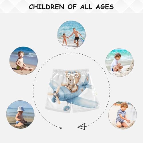 DOMIKING Bear Airplane Blue Toddler Boys' Swim Trunks Mesh Lining Swim Shorts for Beach Pool Gym Adjustable Waist 4