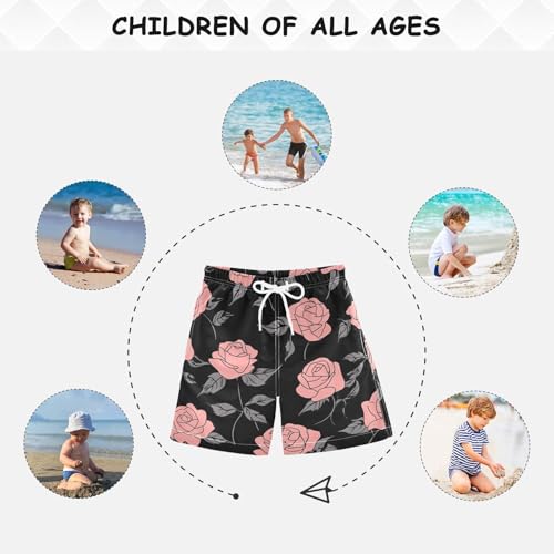 Boys Beach Board Shorts Rose Black Funny Flower Swim Trunk Teen Swimwear 4