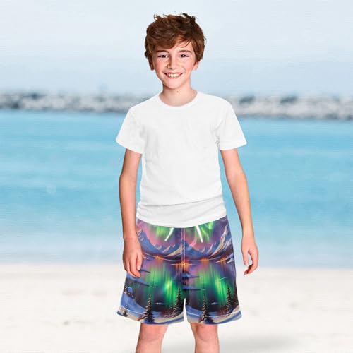Snow Mountain Lake Purple Boys Swim Trunks Quick Dry Toddler Swimsuit Boy Swimwear Bathing Suits Board Shorts XS 6