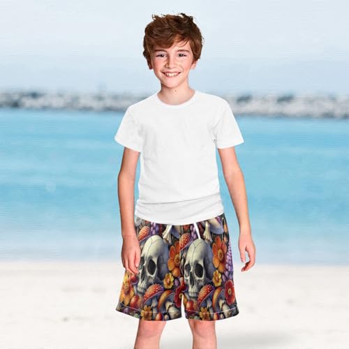 Skull Flower Mushroom Boys Swim Trunks Quick Dry Toddler Swimsuit Boy Swimwear Bathing Suits Board Shorts XL 6