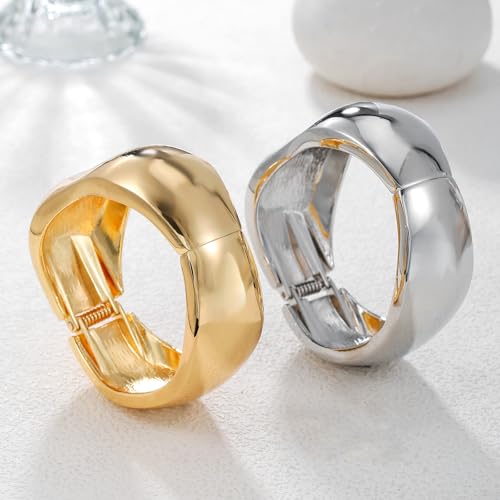 HOT ! Chunky Gold/Silver Gold Cuff Bangle Bracelets for Women Trendy Hinged Cuff Open Wide Chunky Gold Bracelet Minimalist Bangle Jewelry Gift