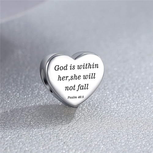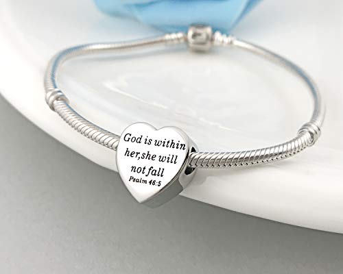• ❤❤MATERIAL❤❤ Bible Verse Charm engraved "God is within her,she will not fall Psalm 46:5",charm made with 316L stainless steel,this bead charm perfect fits Pandola bracelets.Compatible with Biagi, Troll and Chamilia European bracelets. Fit for both necklace and bracelet.The bead charm are proved to be body-safe after rigorous contact test. Without any harmful ingredients, it's nickel-free, lead-free, cadmium-free and anallergic.