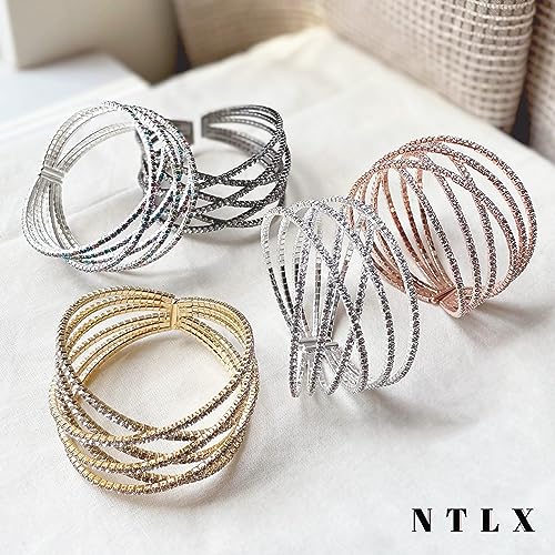 More information about NTLX Crystal Bracelet for Women – Rhinestone Cuff Bracelet – Silver & Gold Plated - Flexible & Adjustable – Multiple X Shape Cross Geometric Negative Space - Bridal, Wedding, Prom, Party, Pageant, Evening, Casual, Bracelet - with Gift Box