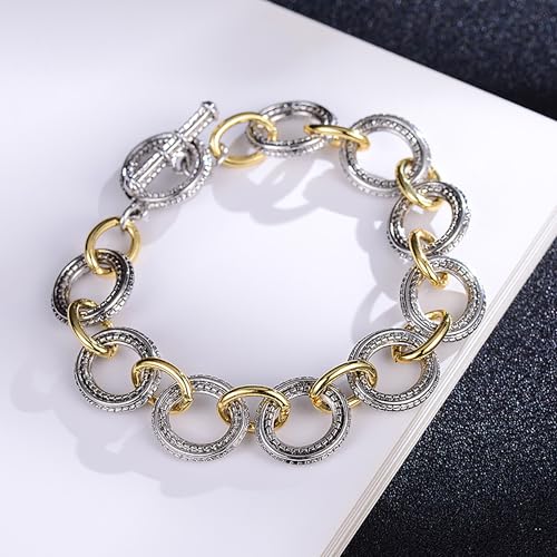 HOT ! Cable Link Chain Bracelets for Women, Two Tone Link Bracelets Gold and Silver Circles Vintage Bracelets Wire Bangle Designer Inspired Jewelry Gifts