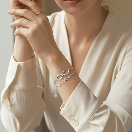 HOT ! Personalized Bracelet Infinity Heart Birthstone Name Bracelet 925 Sterling Silver Adjustable Mother's Day Gift Anniversary Birthday Jewelry for Grandma Girlfriend Custom Jewelry With Name