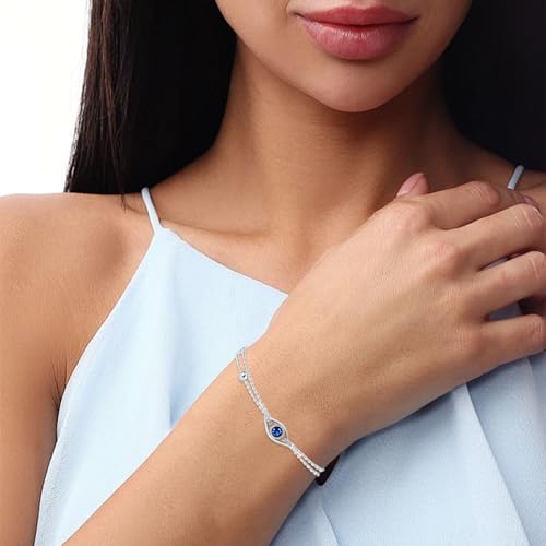• OJO BRACELET DESIGN: Featuring the Evil Eye pattern, embellished with blue cubic zirconia stones, double-layer chain design, silver bead decorations, adjustable length bracelet, stylish for various occasions.