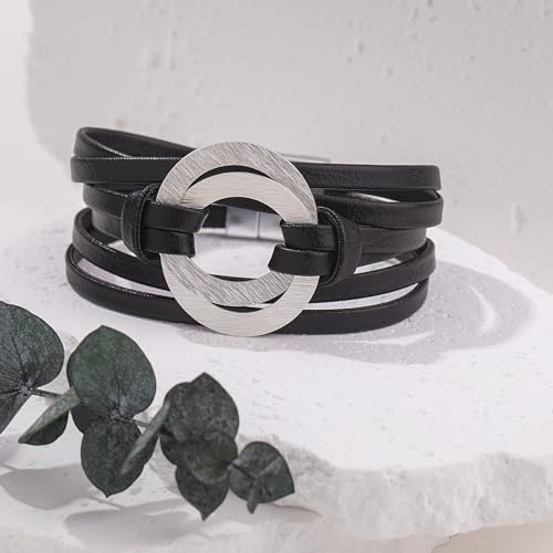 FANCY SHINY Infinity Leather Wrap Bracelets Boho Cuff Bracelets Cute Stackable Bangle with Magnetic Clasp Jewelry Gifts for Women 7