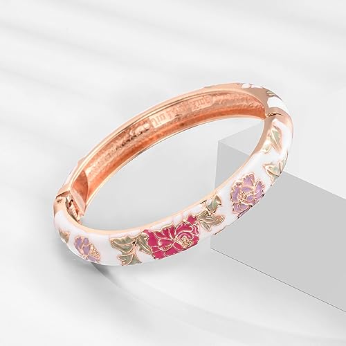 UJOY Vintage Cloisonne Bracelets Flower Enameled Jewelry Plated Cuff Bangle for Women Gift Box 55A35 1