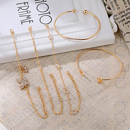 Caiyao Layered Stacking Link Chain Butterfly Honeycomb Bracelet Bangle Set Bohemian Paperclip Rhinestone Bead for Women 14K Gold Plated Animal Jewelry 6