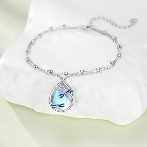 • ✨ Materia ✨ Dragonfly bracelet for women is made of sterling silver, moonstone, no nickel, no lead, no cadmium anti-allergic and suitable for long-term wear, not easily discolored.