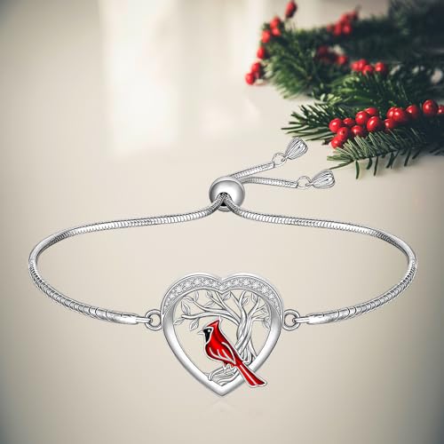 HOT ! Fenthring Cardinal Bracelet for Women Tree of Life Heart Red Cardinal Bracelets Adjustable Sterling Silver Memorial Sympathy Jewelry Gifts