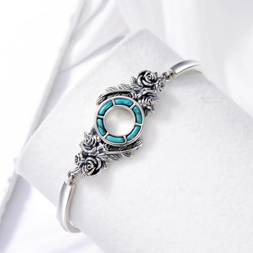 More information about Genuine Turquoise Rose Bracelet, Sterling Silver Boho Adjustable Bangle Cuff Native American Jewelry for Women, Fit for 6.5 7 7.5 Inches