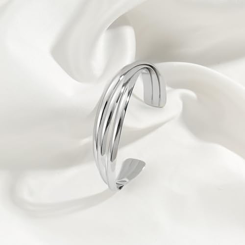 • Unique Design: This Cuff Silver Bracelet Is Cleverly Interwoven With Three Separate Metal Wires. The Interweaving Design Between The Lines Is Modern And Artistic, Suitable For Daily Wear Or Matching With Special Occasions.