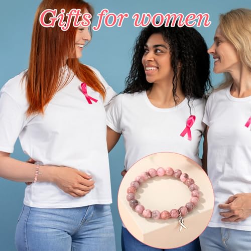 Breast Awareness Bracelet for Women, Ribbon Charm Beaded Bracelets Natural Stone Agate Breast Survivor Self Care Inspirational Gifts Encouragement Accessories for Woman Friends Sister 5