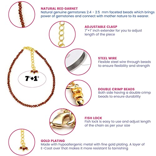 HOT ! Natural Red Garnet Beaded Bracelet January Birthstone Crystal Jewelry Hypoallergenic 8 Inch Gold Plated Lightweight Trendy Western Jewerly For Women