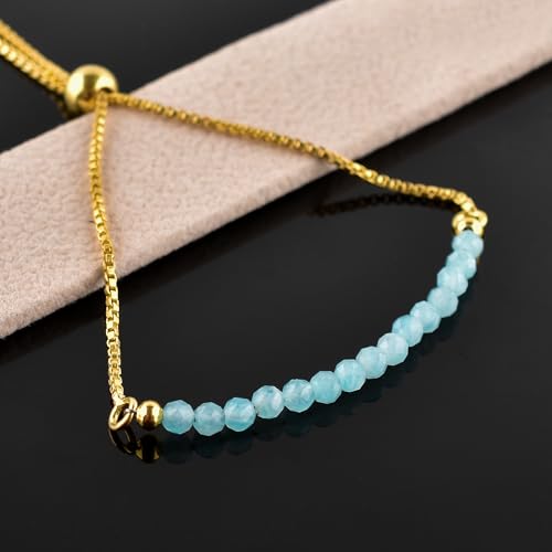 InfinityGemsArt Amazonite Bracelets For Women Birthstone Jewelry Micro Green Beads Beaded Stone Bolo Slider Crystals Gemstones 14K Gold Plated Adjustable Chain, Graduation Gifts For Her 8