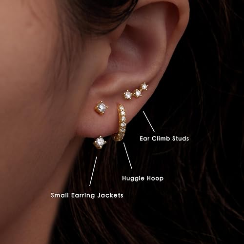 • Trendy Earrings Set: Three pairs stud huggie jacket earrings set perfect for completing any look with effortless elegance. Whether it's the classic Small Huggie Hoop, the intricate Ear Jacket, or the delicate Ear Climber, each piece adds a touch of sparkle, making you shine on every occasion!