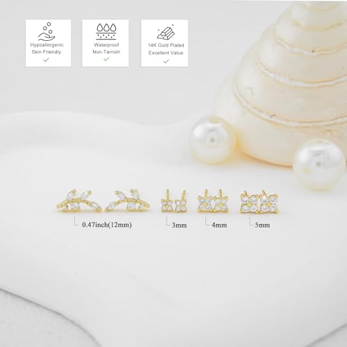 14K Gold Plated Stud Earrings for Women Trendy Hypoallergenic 925 Sterling Silver Post Cartilage Tragus Earring Set for Multiple Piercing Dainty Cute Small Helix Earrings Stack Jewelry for Men 3