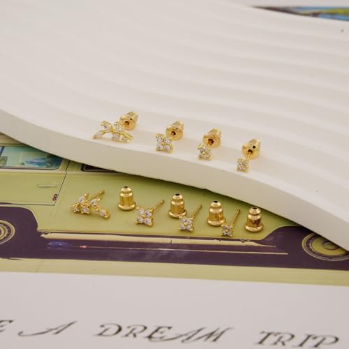 HOT ! 14K Gold Plated Stud Earrings for Women Trendy Hypoallergenic 925 Sterling Silver Post Cartilage Tragus Earring Set for Multiple Piercing Dainty Cute Small Helix Earrings Stack Jewelry for Men