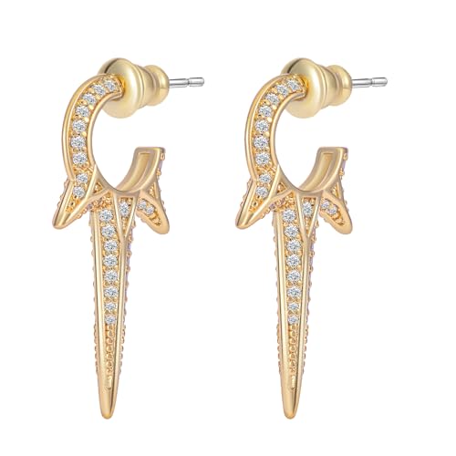 More information about Obidos Gold Hoop Earrings -14K Gold Plated Statement Earrings - Spike Huggie Small Hoop Earrings for Women Boho Simple Hypoallergenic Earrings