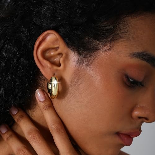 • Chunky Golden Statement Earrings – Stylish & Hypoallergenic:These chunky golden earrings feature a bold 14K golden plated design, offering a luxurious shine without irritation. Hypoallergenic, nickel-free, and lead-free, they’re perfect for those with sensitive ears. The chunky gold hoops add a statement-making touch to any look, ensuring endless compliments.