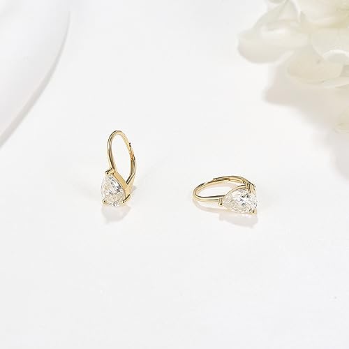 DOVRAN 14K Gold 8 * 6mm 1.5CT Moissanite Diamond Earrings Solid Gold Teardrop Leverback Earrings for Women Engagement Wedding Yellow Gold Earrings 6