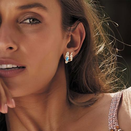 14K Gold Plated 925 Silver Post Illusion Stud Earrings for Women Dainty Cubic Zirconia Studs Small Hoops Lightweight Trendy Jewelry Gift 7