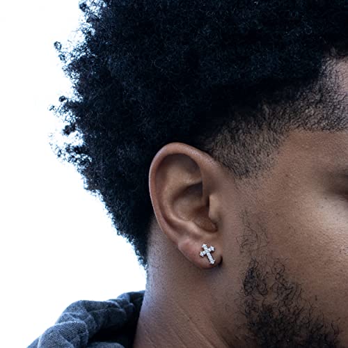 • Iced Cz small prong set cross earrings men: Our mens cross studs are iced with 5A cz stone hand set, offering you the most dazzling and cool earrings for men. Step up your style game with these stunning pieces.Iced Out Earrings Men