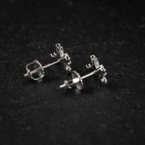 More information about Mens Women's Small Prong Set Iced 5A Cz Hip Hop White Gold Rhodium 925 Sterling Silver Hypoallergenic Crucifix Ice Out Cubic Zirconia Gothic Cross Screw Back Stud Earrings