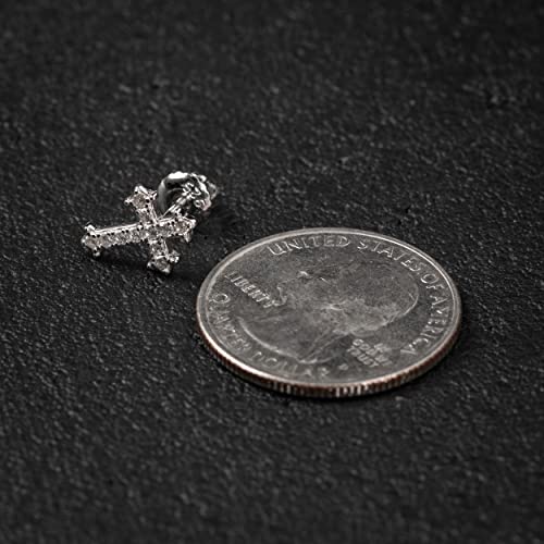 Mens Women's Small Prong Set Iced 5A Cz Hip Hop White Gold Rhodium 925 Sterling Silver Hypoallergenic Crucifix Ice Out Cubic Zirconia Gothic Cross Screw Back Stud Earrings 7