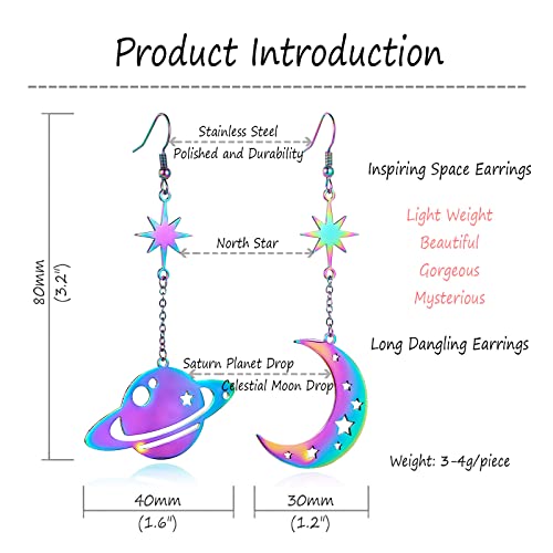 REELMAR Space Dangle Earrings for Women Asymmetrical Celestial Moon Star Saturn Earrings Dangling Crescent Moon Planet Drops Gorgeous Mysterious Space Statement Jewelry 6