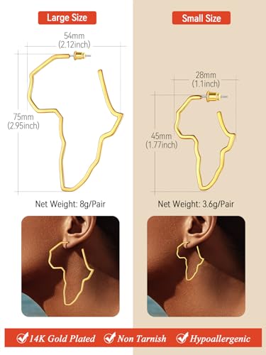 • Lightweight and Comfortable: 75mm*54mm(H*W), Thickness: 1.8mm. Light weight: 8 g per pair. These Africa earrings weigh just 8g per pair, ensuring effortless wear all day long. Featuring bow-knot ear backs and threaded studs, they offer a secure fit without sacrificing comfort
